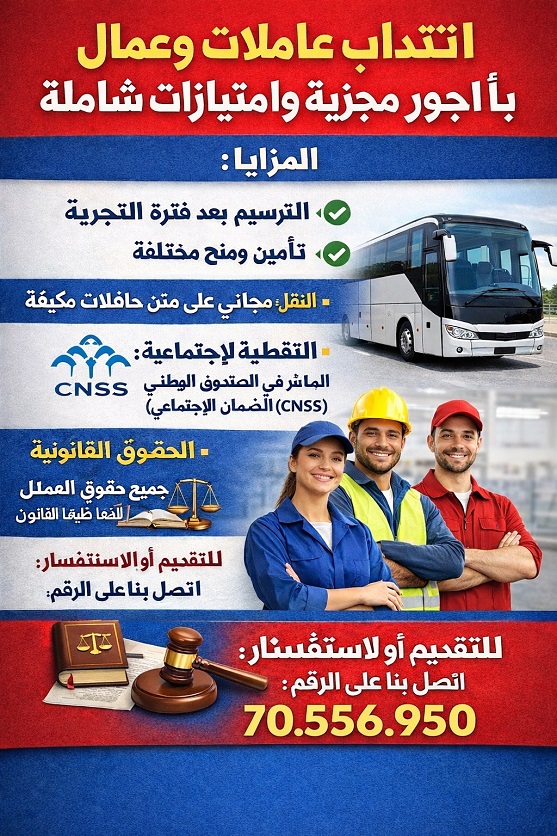 تعتزم الجمهورية الفرنسية فتح باب الترشح لانتداب عمال موسميين للعمل في الزراعة بشهري يوفق 5000 دينار تونسي وذلك في إطار التعاون الفني فعلى الراغبين في الترشح مراجعة الشروط المبينة بالبلاغ التالي OUVRIER ARBORICOLE (H/F) 10 Postes à pour Secteur : Production de Pommes et Poires Synthèse du Poste Localisation Type de contrat Début Région … Lire la suite