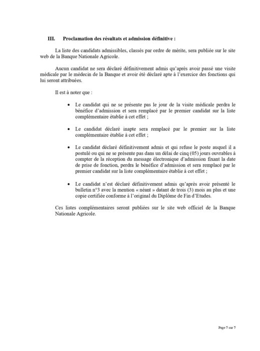 à l’un des postes susvisés, doit obligatoirement s’inscrire sur le site web de la Banque Nationale