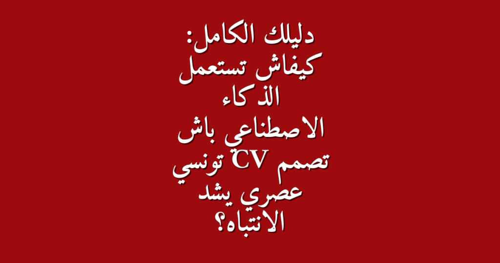 في سوق الشغل التونسي اللي المنافسة فيه قوية برشا، الـCV متاعك ما عادش مجرد ورقة فيها ملخص لمسيرتك المهنية. هو بطاقة التعريف متاعك الأولى قدام مسؤول الموارد البشرية (الـ RH). CV عصري، منظم، و جذاب ينجم يكون هو الفرق بين إنك تتعدى للمقابلة و إلا يتنسى الملف متاعك. و لهنا يجي دور الذكاء الاصطناعي (AI)، اللي ولا أداة قوية برشا باش تعاونك تبني CV احترافي بسهولة و في وقت قصير.