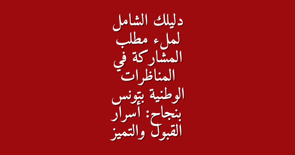 يا جماعة الباحثين عن شغل في تونس، تحية طيبة! المناظرات الوطنية هي البوابة الأساسية باش تدخلوا للوظيفة العمومية، وتعبئة مطلب المشاركة فيها ماهوش مجرد إجراء روتيني. هو أول انطباع تخليه عليك، ومفتاح باش تتعدى للمراحل الجاية. برشا ناس يضيعوا فرصهم موش على خاطر ما عندهمش الكفاءة، أما على خاطر ما يعرفوش كيفاش يعبّوا مطلبهم بطريقة صحيحة ومحترفة. في الدليل الشامل هذا، باش نمشيو خطوة بخطوة ونتعلموا مع بعضنا أسرار النجاح في تعبئة مطلب المشاركة في المناظرات الوطنية، من الألف للياء، باش تزيدوا حظوظكم وتوصلوا للمنصب اللي تحلموا بيه.