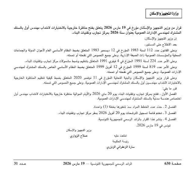 تم نشر القرارين بالرائد الرسمي للجمهورية التونسية عدد 31 بتاريخ 19 مارس 2026:concours tunisie