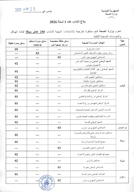 غلق باب التسجيل: يوم 22 أفريل 2026 على الساعة العاشرة صباحا